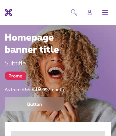 - HTML content This HTML content is used to promote the product/service. It consists of the Design System components, which are usually: a heading, a subtitle, a promo patch with its info and a button.