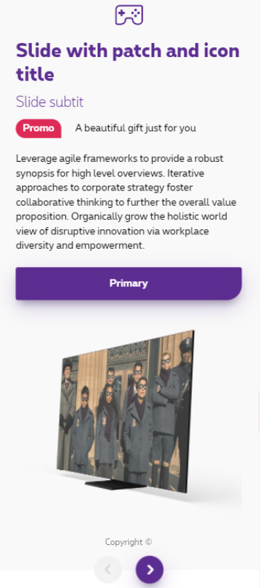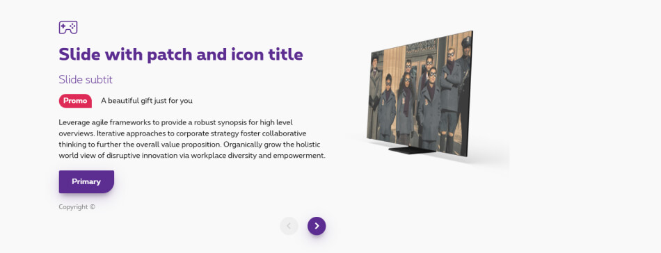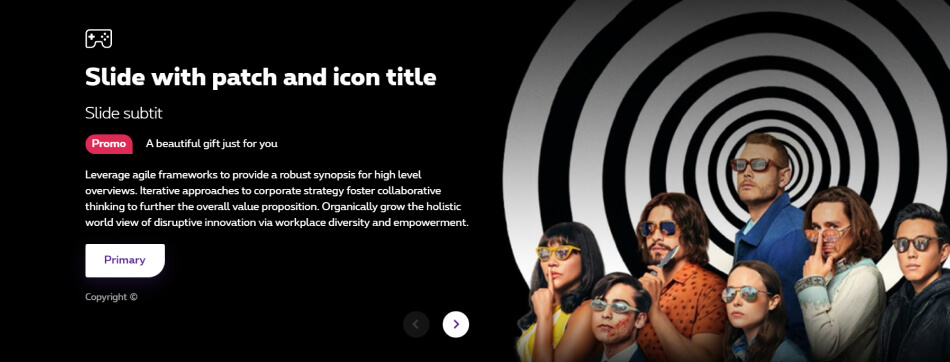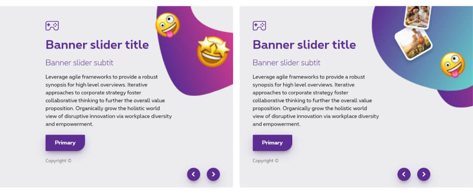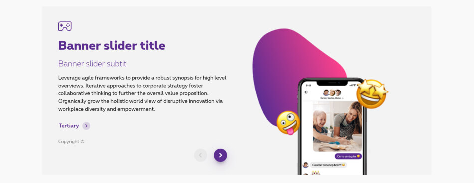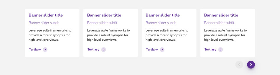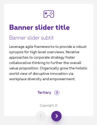 The banner slider is a section with multiple contents on a same row. They contain an icon, a title, subtitle, copy, CTAs and/or visual and you navigate through those contents with arrows.