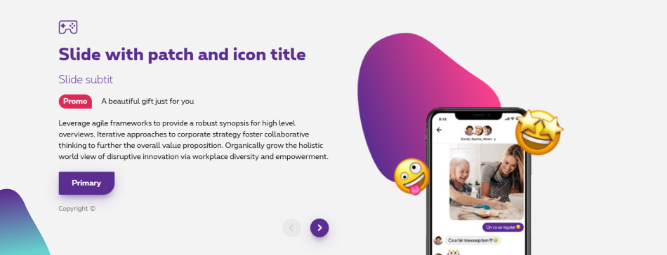 On desktop, the outgrid option allows you to set the slider's width to the number of columns you need. This slider extends out of the grid to the left or to the right. This slider uses a background image that you can hide in mobile. In mobile the slider take the full width. For this display, use the template name-2111-og-banner-slider.psd
