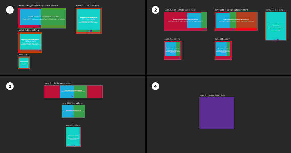The composition of the slider is set to the grid. On desktop, you can set the slider's grids to 4, 6 or 12. This slider uses a background image that you can hide in mobile. In mobile you can set the slide to a gridding 12 or 6. For this display, use the template name-2111-default-bg-banner-slider.psd