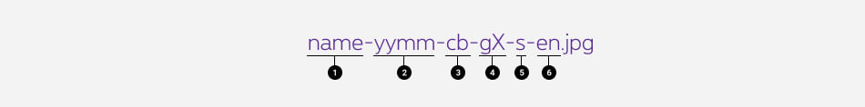 - Language English by default (-en), French (-fr), Dutch (-nl). If it exists in only one language, it isn't mandatory to specify.