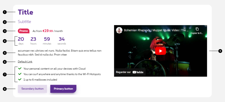 - Visual as content Can be an image, a animated GIF, a video or a media device. It appears as content at the right for desktop and at the bottom of the content header on mobile.