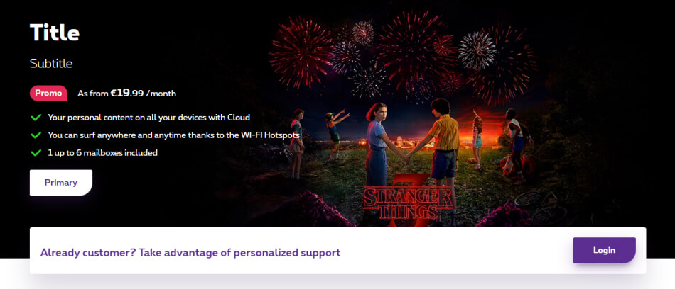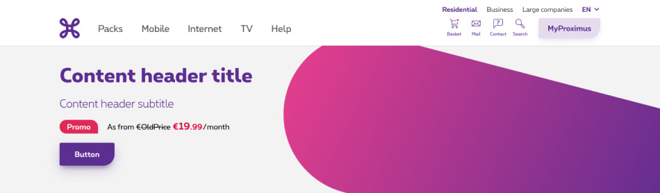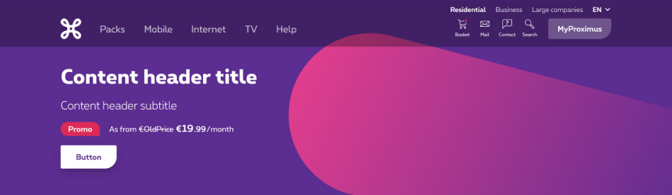For an extra big content header, there’s the possibility to add an extra space below the content header’s content: 30px in mobile, 70px in desktop. This will give more space to the visual. These big versions are mostly used for the TV options pages where we want really immersive visuals.