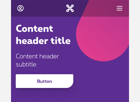 - Immersive content header This content header appears behind the header which is in negative and slightly transparent. There's an additional space on top of the content.