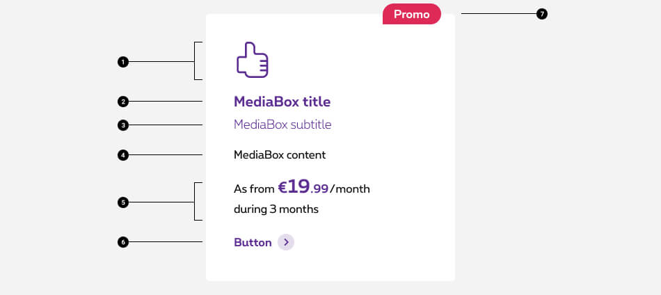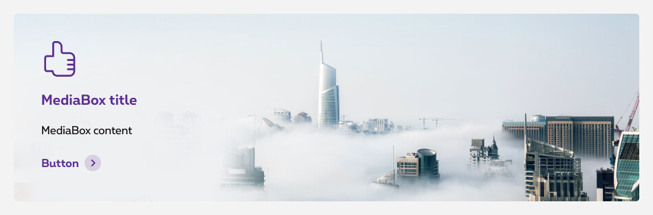 The media box is a panel that you can put anywhere on a page. It can contain a title, icons, content text, prices and promo patches, CTAs.