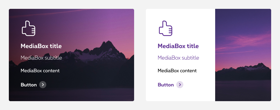 There are two ways to display a media box. Either you have a media box with a background image or with a content image.