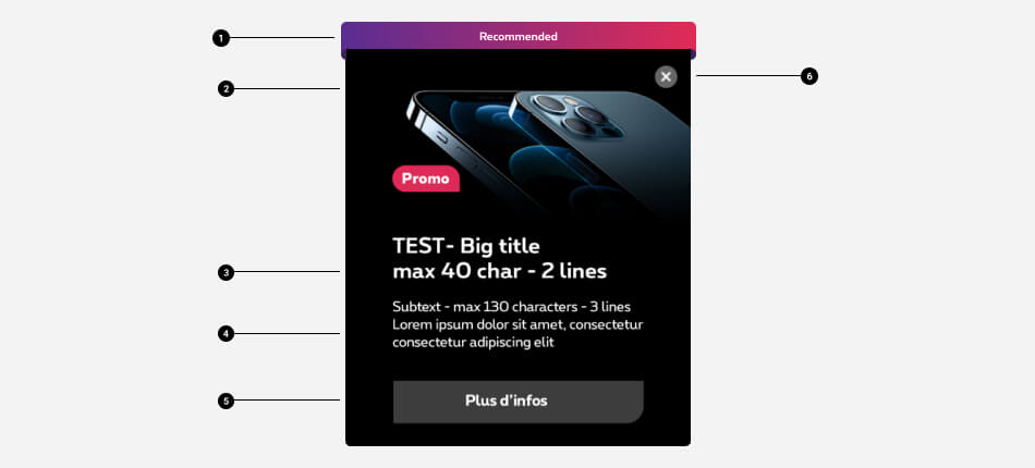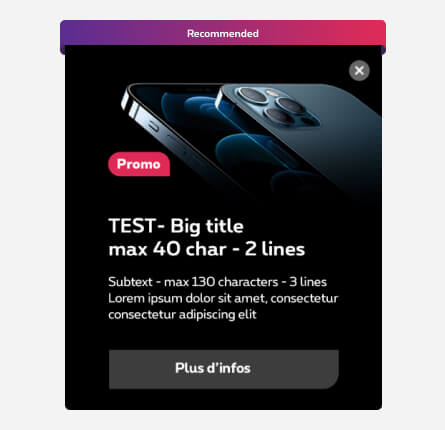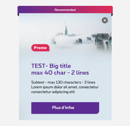 - Placeholder text in the template is the longest possible. If the text isn't as long on prod, please adapt the main visual so it takes as much space as possible in the box.