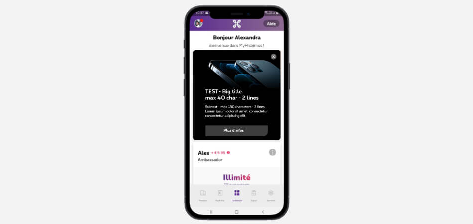NBO visuals are also displayed for MyProximus web. To have all the correct information go to MyProximus web > NBO box.