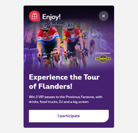 Enjoy! NBO banners exist both in positive and negative version. They must contain the Enjoy! logo in the visual as it is not added in HTM. It is usually placed in the upper left corner of the visual. The logo should also be in positive or negative.
