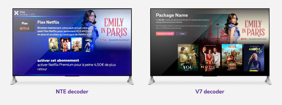 Added on top of the visual, not in the visual. - Netflix pack mention (NTE decoder only)