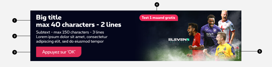 HTML contents do not come on top of the NBO banners. The designers need to put the copy and contents themselves. Here is a quick overview of what the NBO banner contains to better understand this documentation: