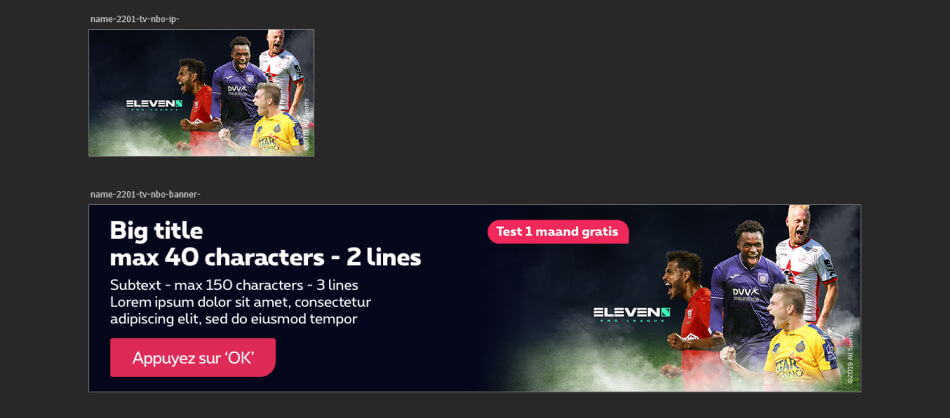 There are two different formats: the NBO banners and the small vignettes (ip artboard):